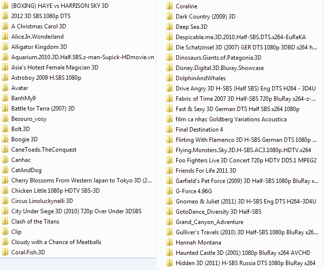 Em nhận copy phim 3D cho các bác có nhu cầu, hiện nay trong ổ cứng của em đã có hơn 1TB phim 3D, mời các bác liên hệ để copy phim, em xin bác ít tiền công là 200k để copy toàn bộ ổ của em.